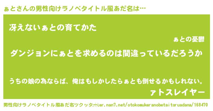 | 伝説のあだ名 | 『孤高の遊び人ぁと』『伝説の竜騎士ぁと』 |