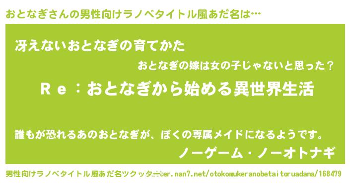 | 意味不明あだ名 | 『自称おとなぎ』『永久保存おとなぎ』 |