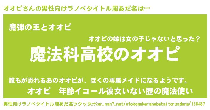 | 女子向けラノベタイトル風あだ名 | 『オオピアンティーク』 |