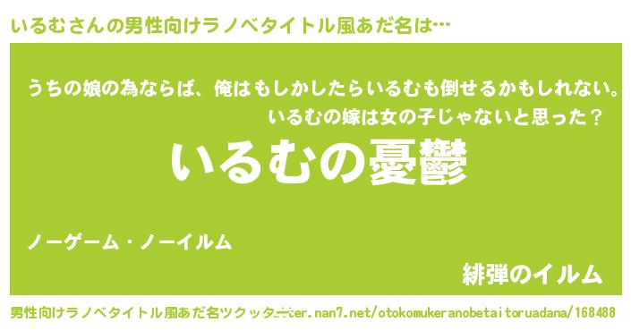 | 女子向けラノベタイトル風あだ名 | 『(仮)いるむのやんごとなき事情』 |