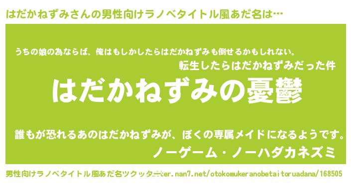 | 女子向けラノベタイトル風あだ名 | 『(仮)はだかねずみのやんごとなき事情』 |