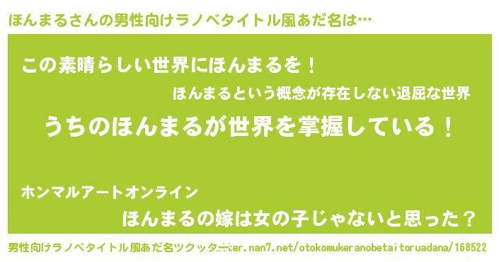 | 意味不明あだ名 | 『住所不定無職ほんまる(85歳)』 |