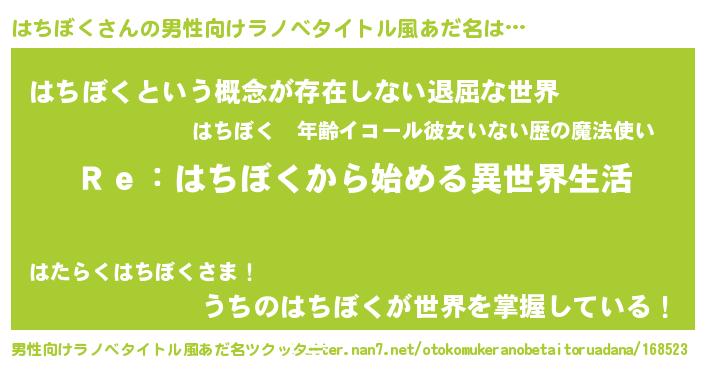| 伝説のあだ名 | 『古文書に記された勇者はちぼく』 |