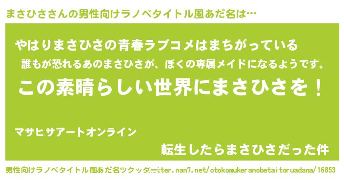 | 女子向けラノベタイトル風あだ名 | 『悪役まさひさに転生したようですが、知った事ではありません』 |