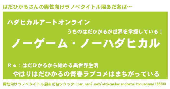 | 伝説のあだ名 | 『救世主となる占い師はだひかる』 |