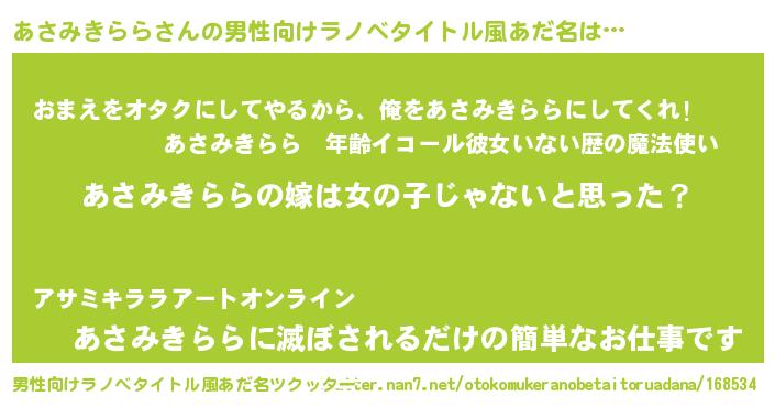 | 女子向けラノベタイトル風あだ名 | 『あさみきららの卵を拾いまして』 |