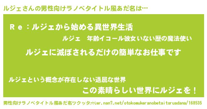| 意味不明あだ名 | 『自称ルジェ』『住所不定無職ルジェ(56歳)』 |