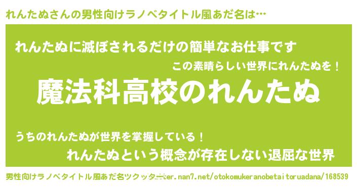 | 意味不明あだ名 | 『自称れんたぬ』『永久保存れんたぬ』 |