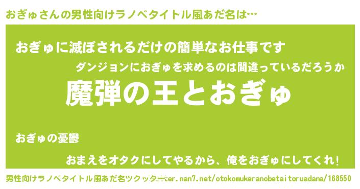 | 胡散臭い通販商品みたいなあだ名 | 『世界中を虜にした世界で10本だけ現存している希少なブランデー…その名も「おぎゅ」』 |