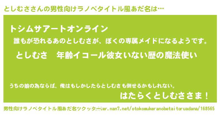 | 胡散臭い通販商品みたいなあだ名 | 『億万長者になれる水晶球…その名も「としむさ」』 |