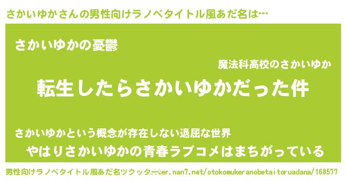 | 伝説のあだ名 | 『不死鳥の竜騎士さかいゆか』 |