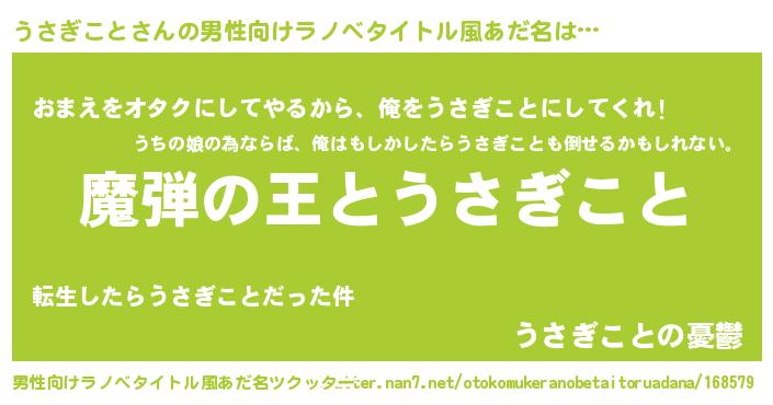 | 意味不明あだ名 | 『住所不定無職うさぎこと(89歳)』 |