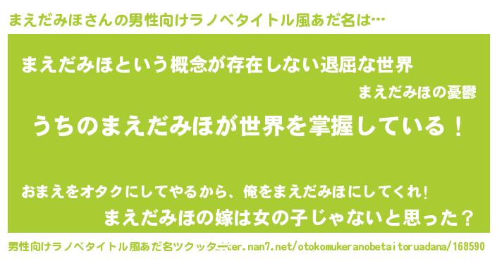 | 胡散臭い通販商品みたいなあだ名 | 『前代未聞の健康食品…その名も「まえだみほ」』 |