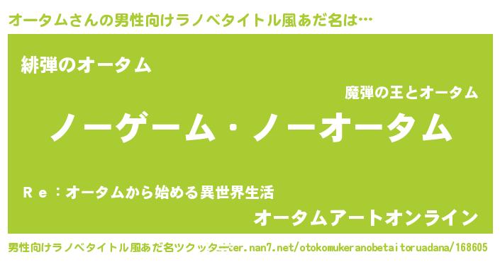 | 女子向けラノベタイトル風あだ名 | 『オータム恋絵巻』『闇のオータム』 |
