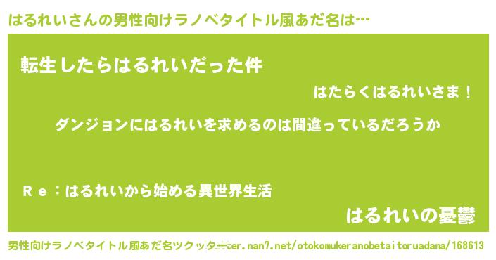 | 女子向けラノベタイトル風あだ名 | 『はるれいの卵を拾いまして』 |