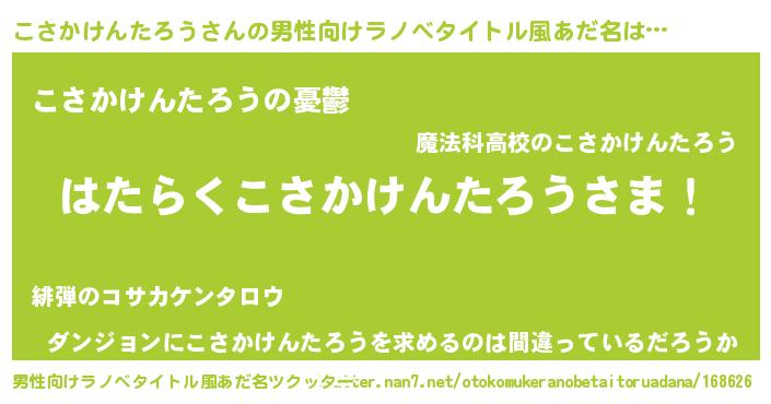 | 胡散臭い通販商品みたいなあだ名 | 『必ず成功する霊験あらたかなお札…その名も「こさかけんたろう」』 |