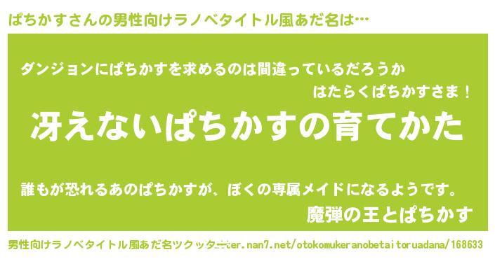 | 意味不明あだ名 | 『とにかく怪しいぱちかす』 |