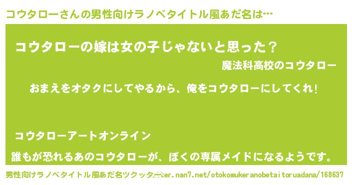| 女子向けラノベタイトル風あだ名 | 『コウタロー夫妻のなれそめ』 |