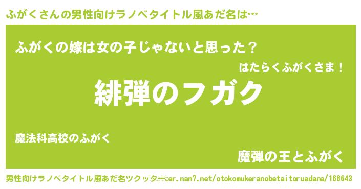 | 意味不明あだ名 | 『とにかく怪しいふがく』『自称ふがく』 |