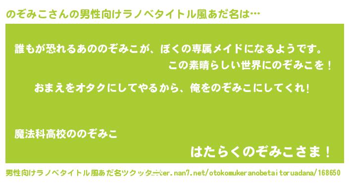 | 女子向けラノベタイトル風あだ名 | 『のぞみこ夫妻のなれそめ』 |