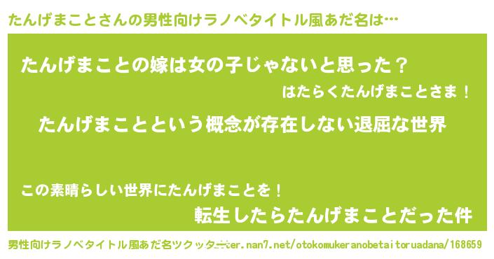 | 胡散臭い通販商品みたいなあだ名 | 『来世でも幸せになれる健康食品…その名も「たんげまこと」』 |