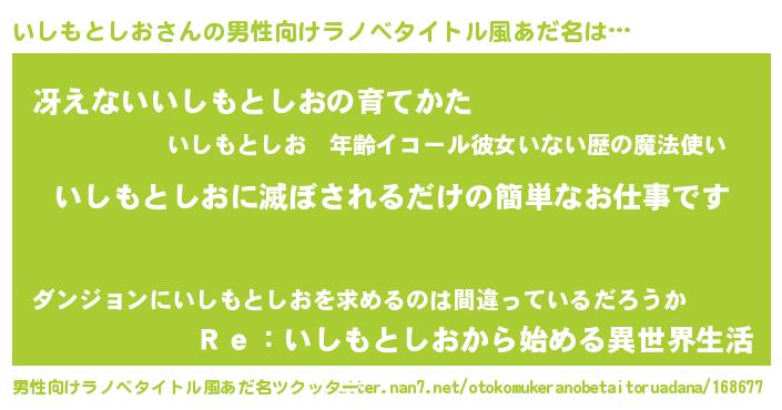 | 意味不明あだ名 | 『自称いしもとしお』 |