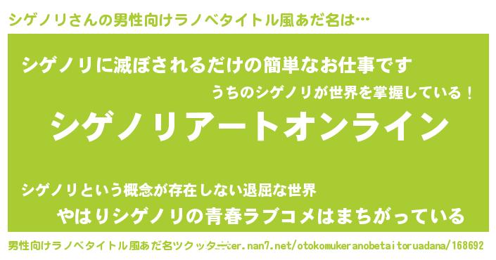 シゲノリさんの男性向けラノベタイトル風あだ名をツクッター!