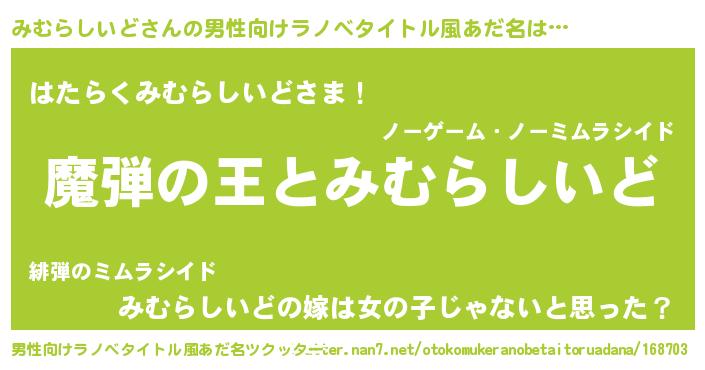 | 意味不明あだ名 | 『住所不定無職みむらしいど(4歳)』 |