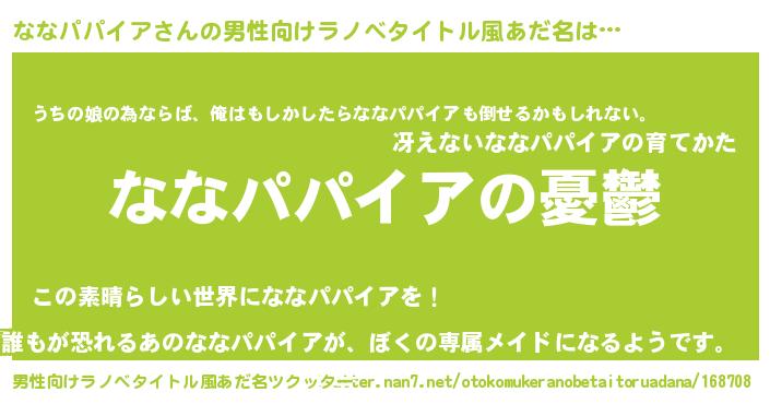 | 胡散臭い通販商品みたいなあだ名 | 『必ず成功するブレスレット…その名も「ななパパイア」』 |