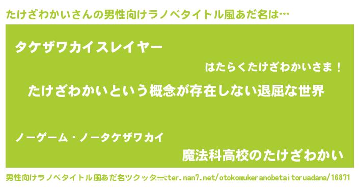 たけざわかいさんの男性向けラノベタイトル風あだ名をツクッター!
