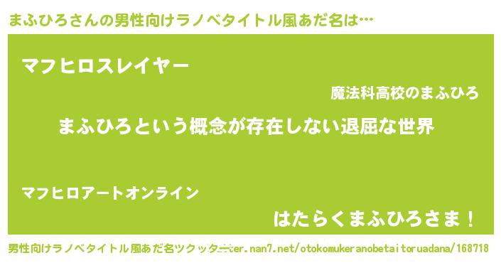 | 女子向けラノベタイトル風あだ名 | 『異世界で失敗しない100のまふひろ』 |