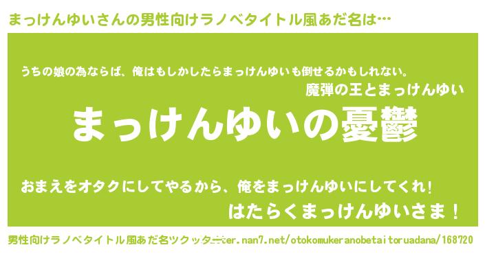 | 女子向けラノベタイトル風あだ名 | 『(仮)まっけんゆいのやんごとなき事情』 |