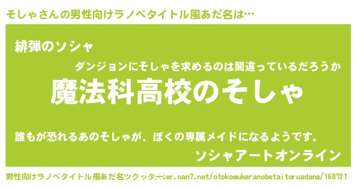 | 女子向けラノベタイトル風あだ名 | 『そしゃなんてお断りですっ。』 |