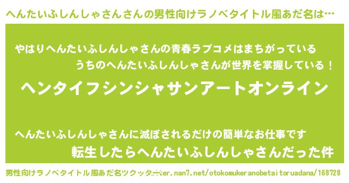 | ヒーロー風カッコイイあだ名 | 『スーパーヘンタイフシンシャサン』 |