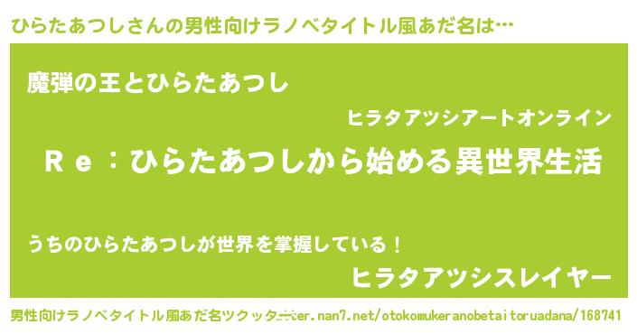 | 女子向けラノベタイトル風あだ名 | 『ひらたあつしストレイドッグス』 |