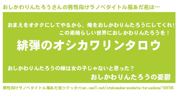 | 女子向けラノベタイトル風あだ名 | 『シンデレラおしかわりんたろう家の靴箱館』 |