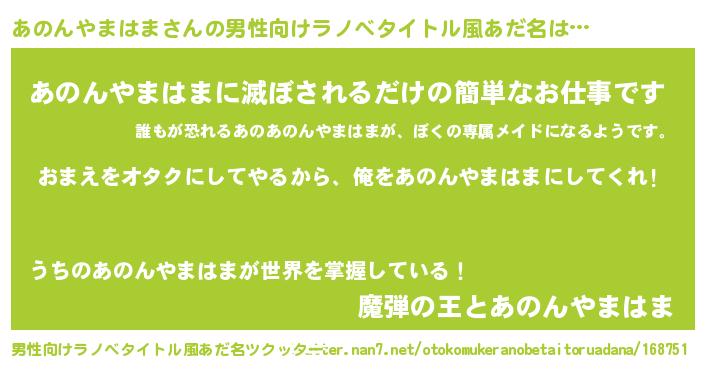 | 女子向けラノベタイトル風あだ名 | 『あのんやまはま恋絵巻』 |
