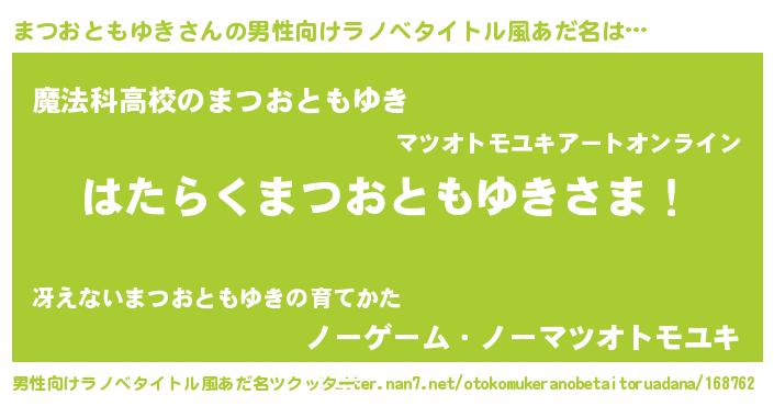 | 意味不明あだ名 | 『自称まつおともゆき』 |