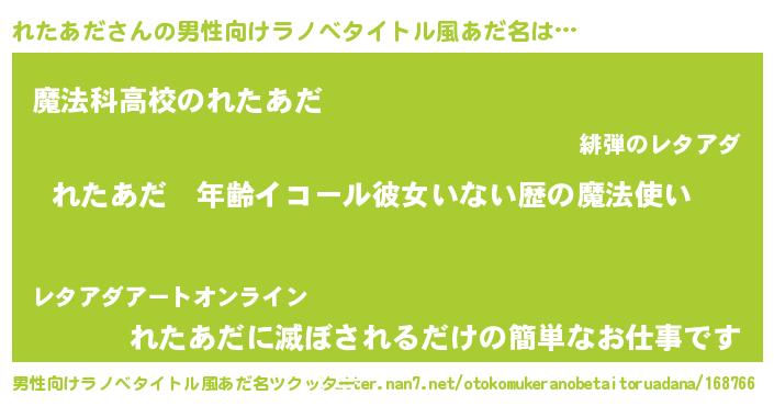 | 女子向けラノベタイトル風あだ名 | 『れたあだの玉の輿計画!』 |