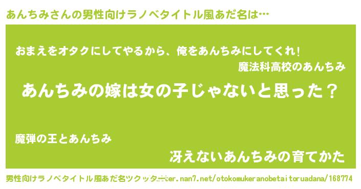 | 意味不明あだ名 | 『とにかく怪しいあんちみ』 |
