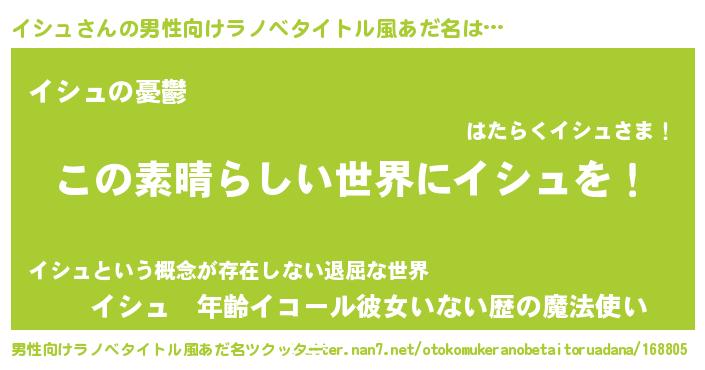 | 意味不明あだ名 | 『住所不定無職イシュ(77歳)』 |