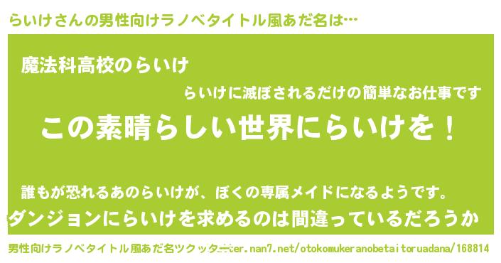 | 女子向けラノベタイトル風あだ名 | 『悪役らいけに転生したようですが、知った事ではありません』 |