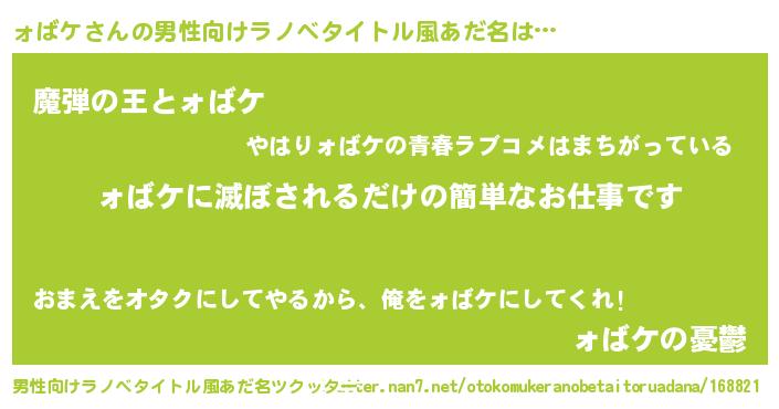 | 意味不明あだ名 | 『住所不定無職ォばケ(14歳)』 |