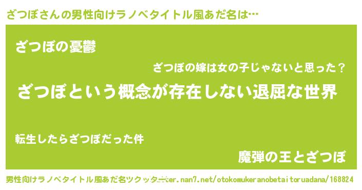 | ヘコむあだ名 | 『ざつぼ(小並感)』『ざつにー』 |