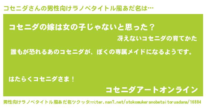 | 女子向けラノベタイトル風あだ名 | 『異世界でカフェコセニダを開店しました。』 |