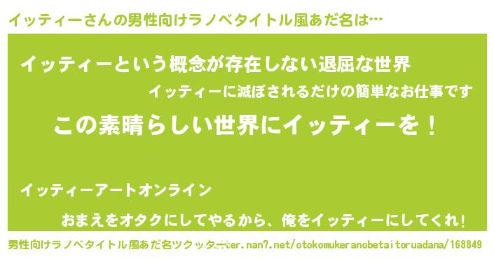 | 意味不明あだ名 | 『住所不定無職イッティー(91歳)』 |