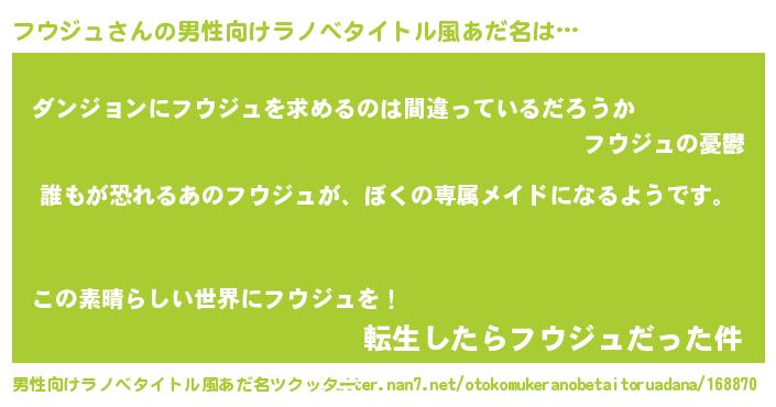 | 胡散臭い通販商品みたいなあだ名 | 『来世でも幸せになれる健康食品…その名も「フウジュ」』 |