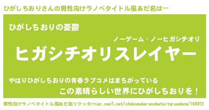 | 料理風あだ名 | 『ひがしちおりごはん』 |