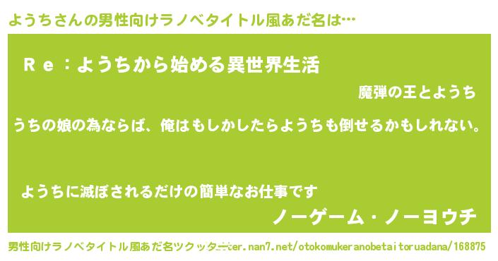 | ファンタジー風あだ名 | 『エターナルヨウチー』『ゼヨウトゥ』 |