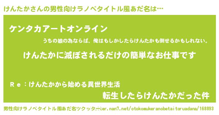 | 胡散臭い通販商品みたいなあだ名 | 『億万長者になれるブレスレット…その名も「けんたか」』 |